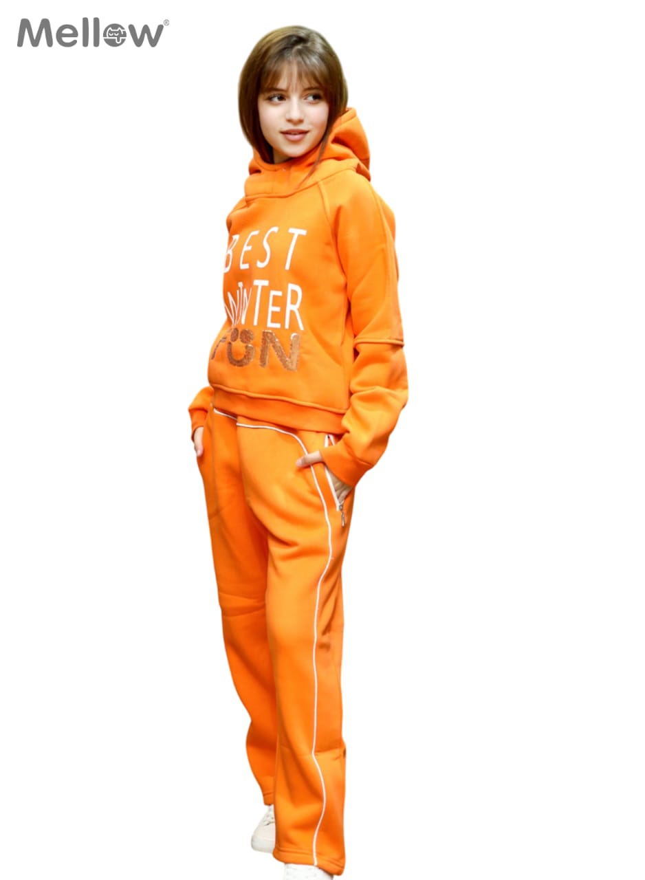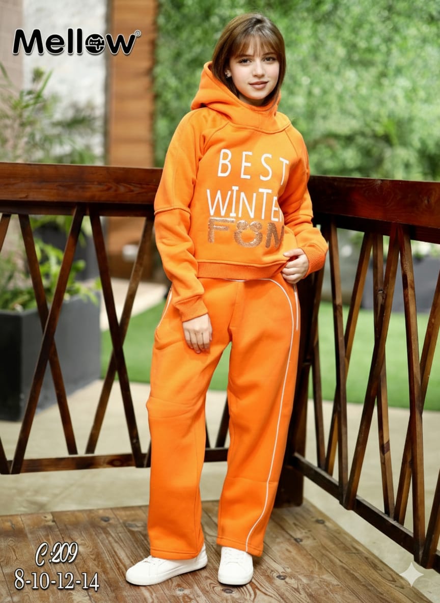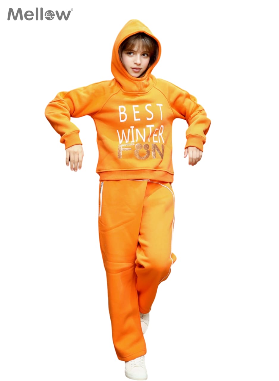 سوت برتقالي زاهي يعكس طاقة الفرح والدفء. يتميز بخامة فاخرة وشعار مميز على الصدر. تصميم مريح وعصري يناسب اللعب اليومي والخروجات الشتوية. مثالي للفتيات ..